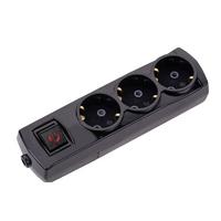3'lü Anahtarlı Topraklı Klemensli Grup Priz (Çocuk Emniyetli) Siyah