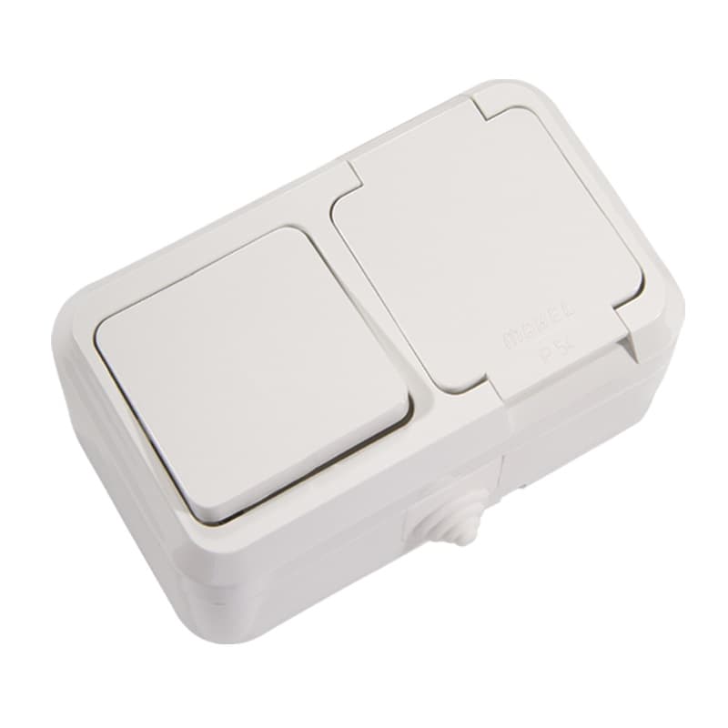MAKEL SIVA ÜSTÜ NEMLİYER KAPAKLI TOPRAKLI PRİZ + ANAHTAR BEYAZ